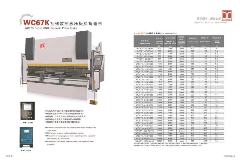 產(chǎn)品介紹:WE67K電液伺服數(shù)控折彎?rùn)C(jī)性能特點(diǎn): ●兩側(cè)主油缸同步采用德國(guó)進(jìn)口電液伺服閥和德國(guó) HEIDENHAIN 公司光柵尺構(gòu)成閉環(huán)控制,反饋***高,滑塊運(yùn)行準(zhǔn)確,從而使折彎精度、滑塊重復(fù)定位精度高。 ●采用液壓凸形自動(dòng)補(bǔ)償系統(tǒng),解決滑塊在折彎過(guò)程中的變形對(duì)工件質(zhì)量的影響。補(bǔ)償數(shù)量由數(shù)控系統(tǒng)自動(dòng)調(diào)整,方便***。 ●采用功能齊全的后擋料機(jī)構(gòu),可選擇控制多個(gè)后擋料軸。后擋料中的功能部件,如導(dǎo)軌、絲杠