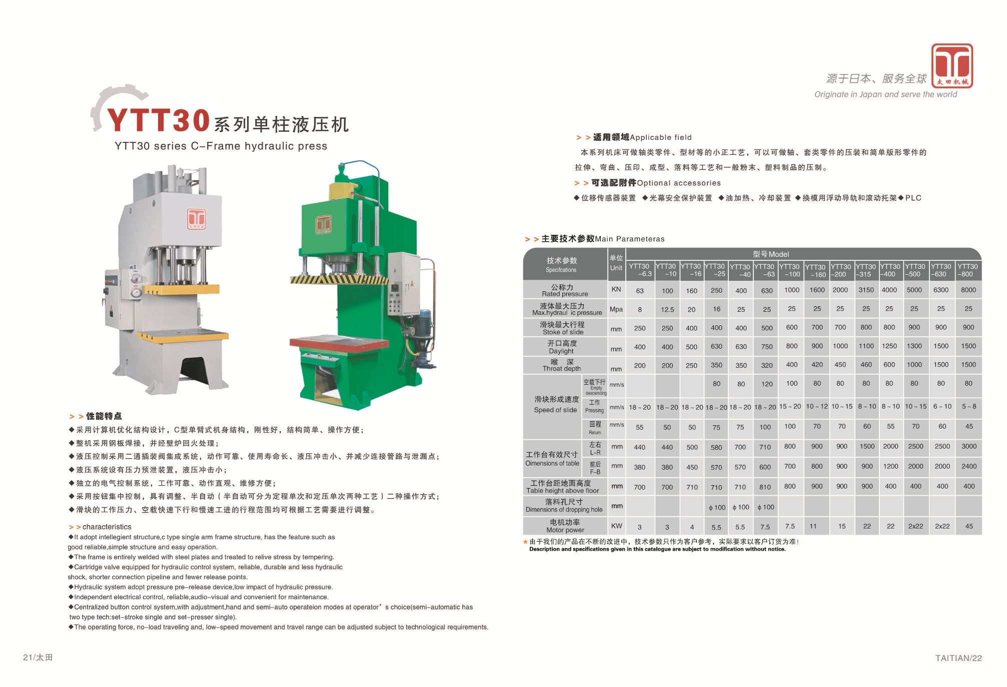 產(chǎn)品介紹:性能特點(diǎn):采用計算機(jī)優(yōu)化結(jié)構(gòu)設(shè)計,C型單臂式機(jī)身結(jié)構(gòu),剛性好,結(jié)構(gòu)簡單、操作方便;整機(jī)采用鋼板焊接,并經(jīng)壁爐回火處理;液壓控制采用二通插裝閥集成系統(tǒng),動作可靠、使用壽命長、液壓沖擊小、并減少連接管路與泄漏點(diǎn);液壓系統(tǒng)設(shè)有壓力預(yù)泄裝置,液壓沖擊?。华?dú)立